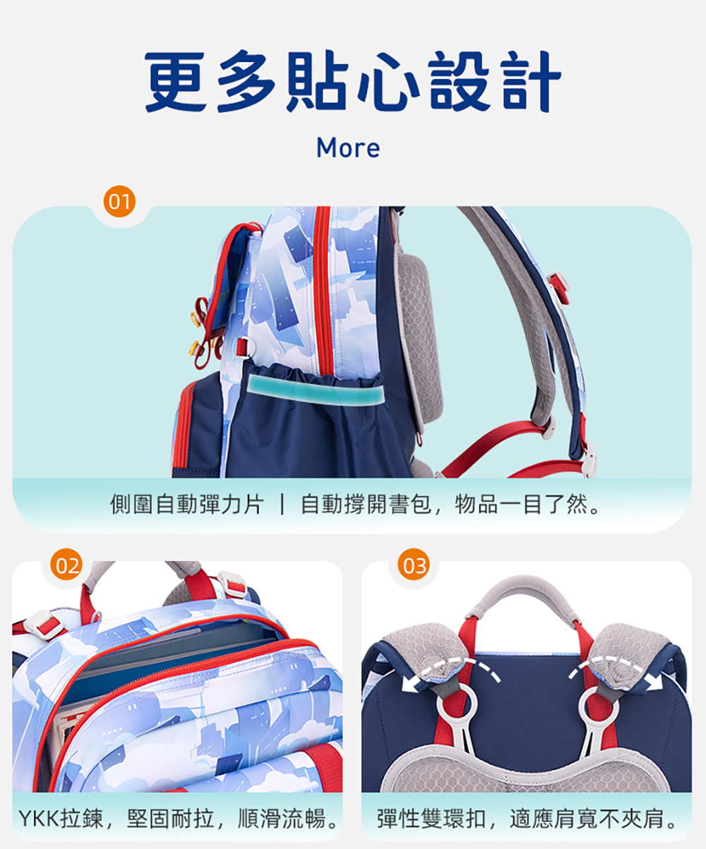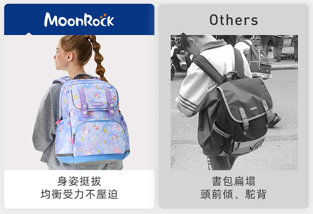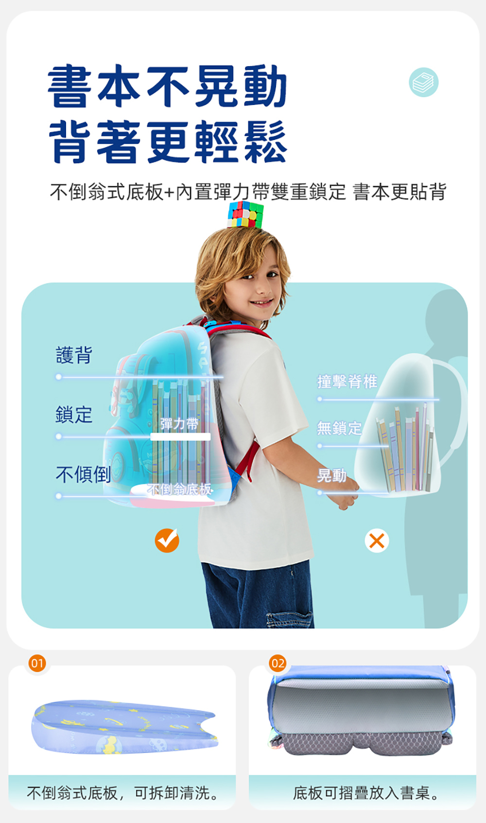 ● 內置的書本自動傾向背部,重量貼近背部而不往後傾