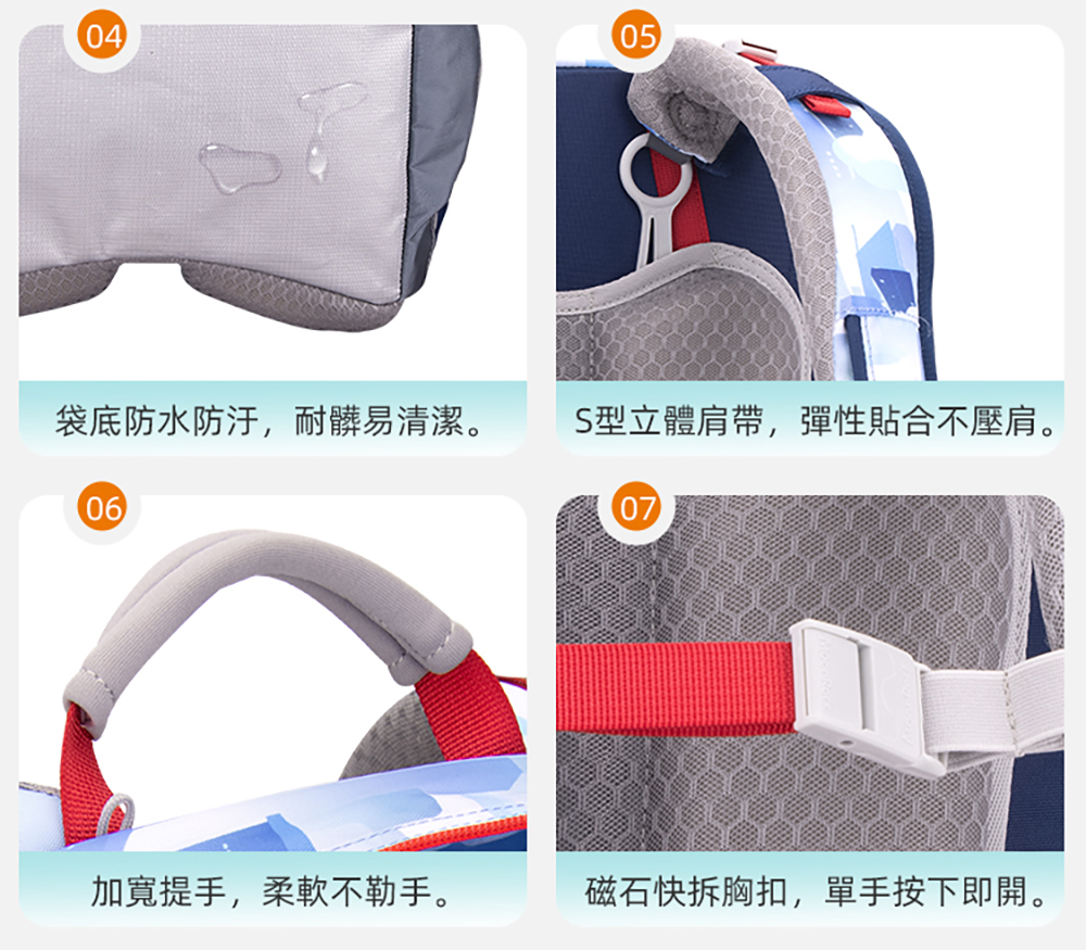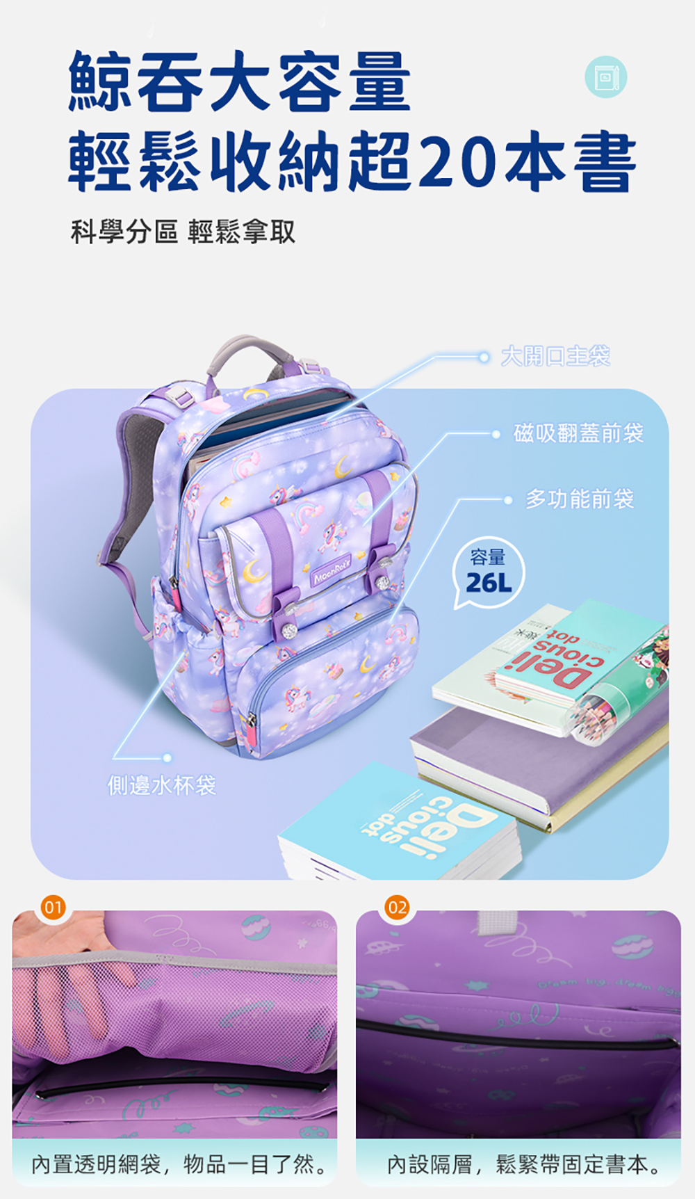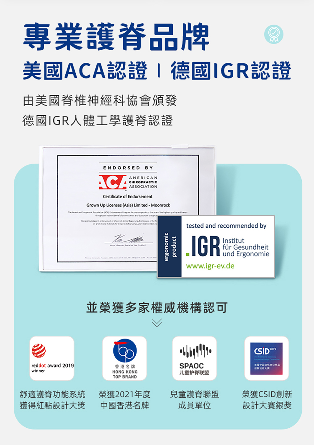 ● 內置的書本自動傾向背部,重量貼近背部而不往後傾