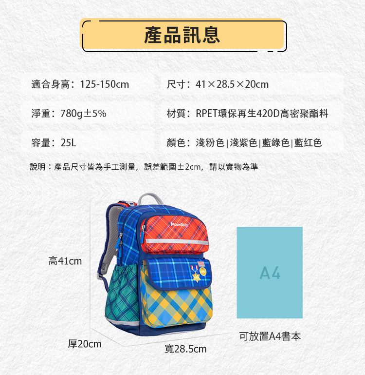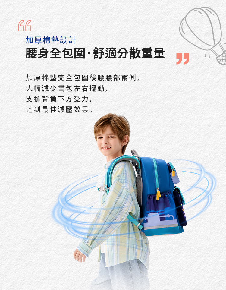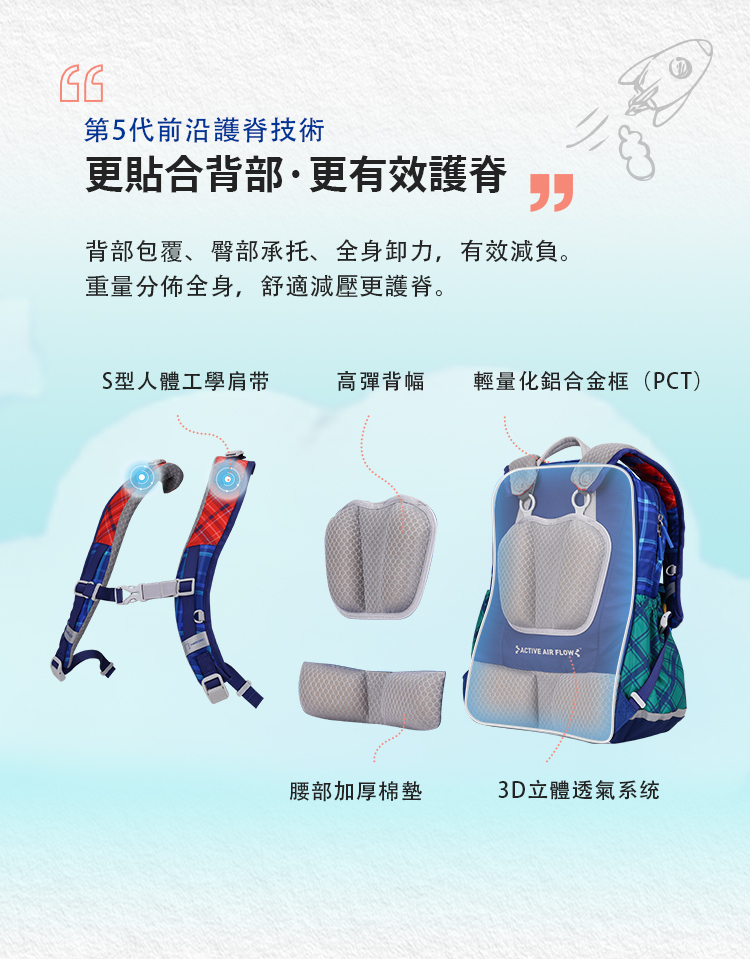 ASS201P 中低年級 學院新星-藍紅色 護脊書包