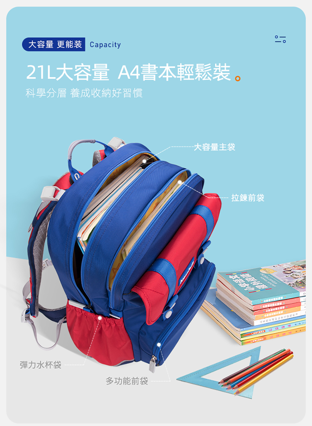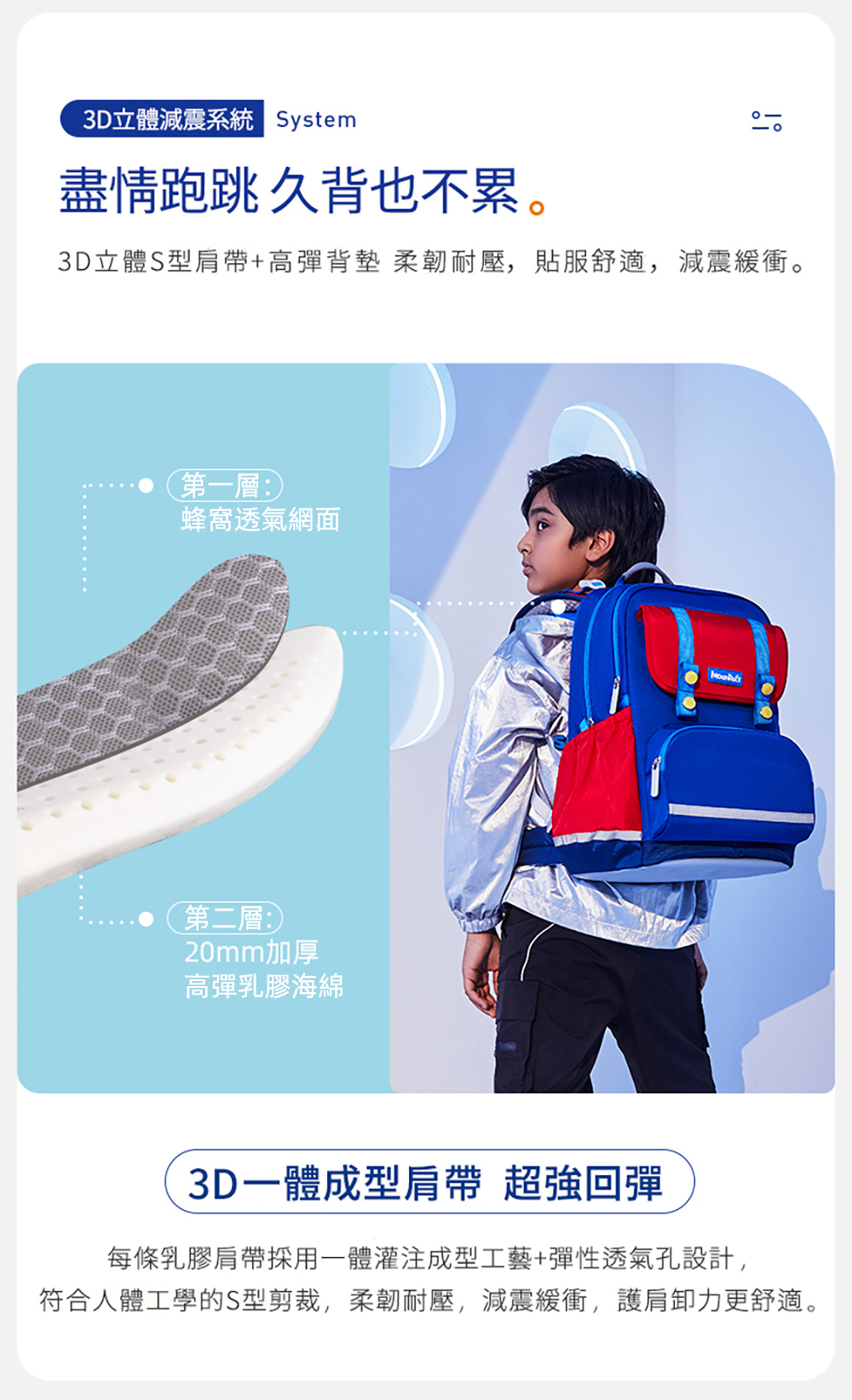 ● S型立體肩帶,不勒肩膀背不累
