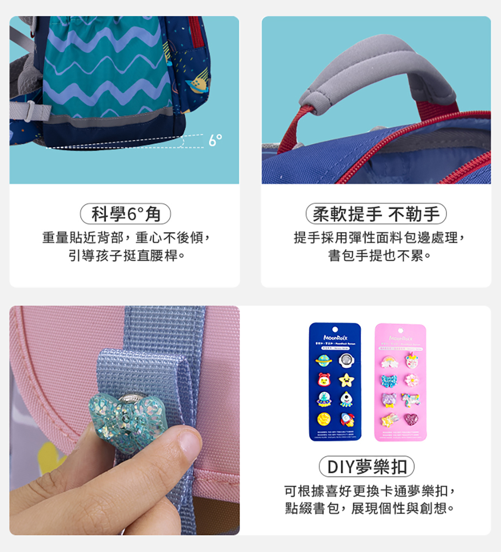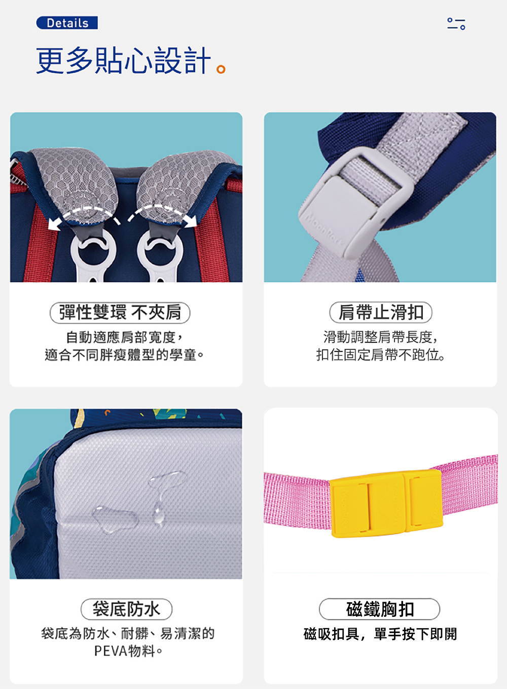 ● 可調節式肩帶,伴隨身高成長