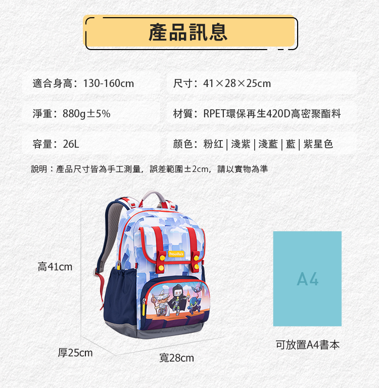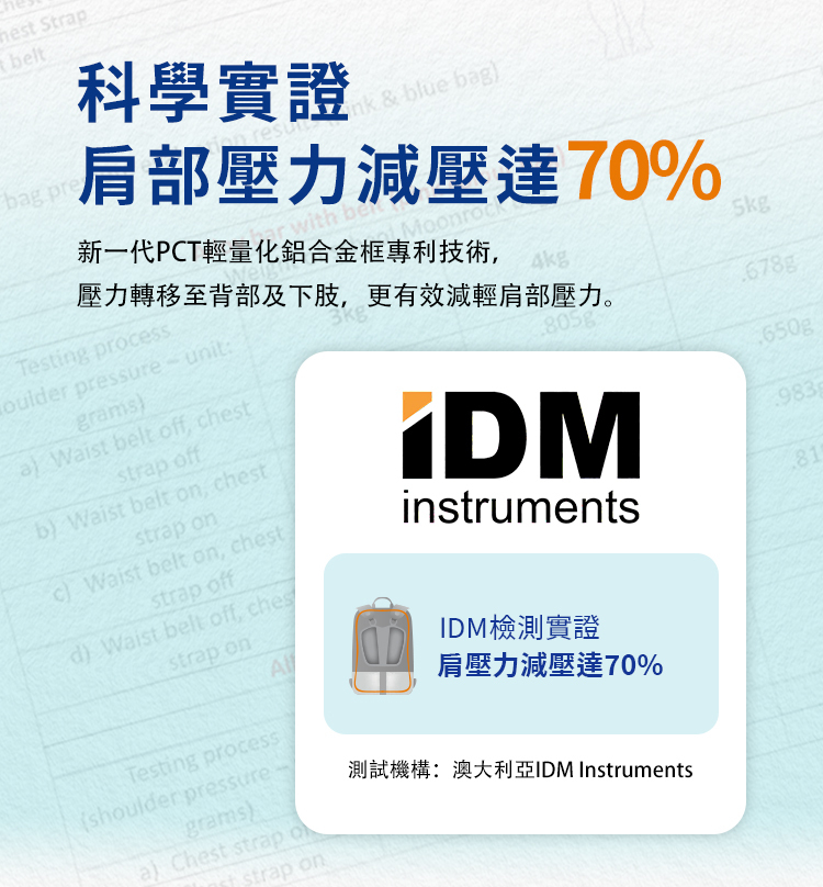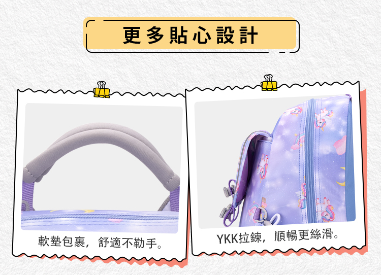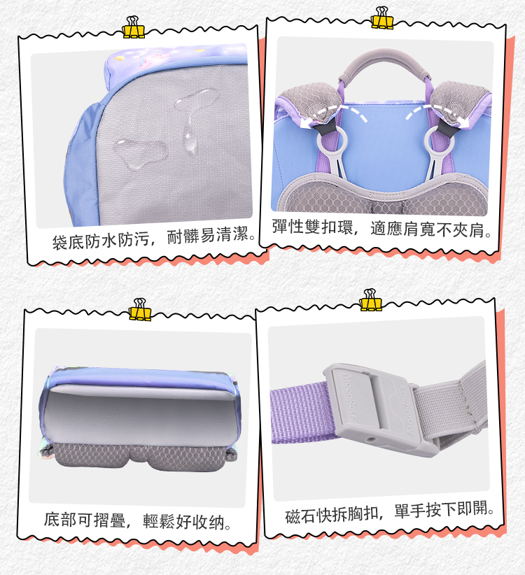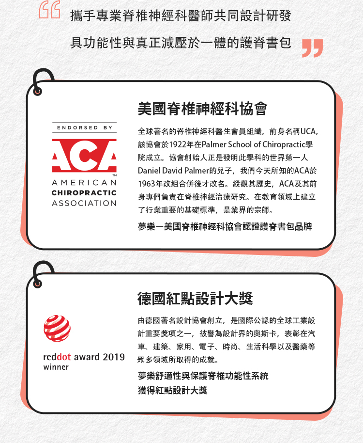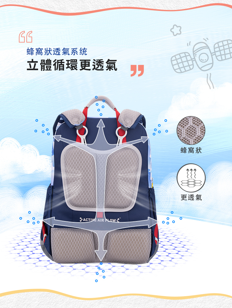 ● 內置的書本自動傾向背部,重量貼近背部而不往後傾