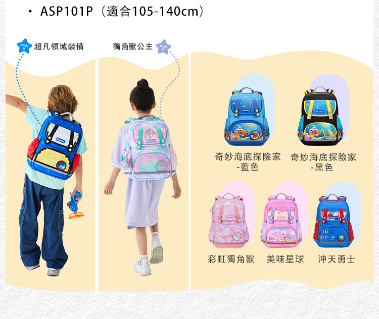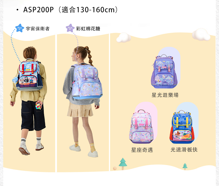 ASP200P 中高年級 星光遊樂園 成長型護脊書包-紫星色