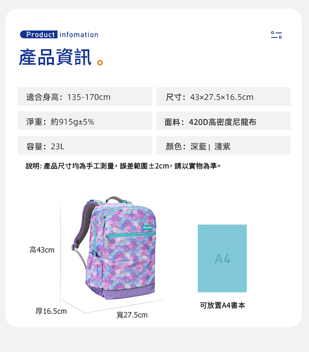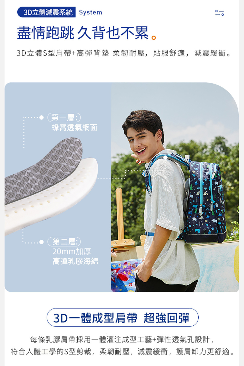 ● S型立體肩帶,不勒肩膀背不累