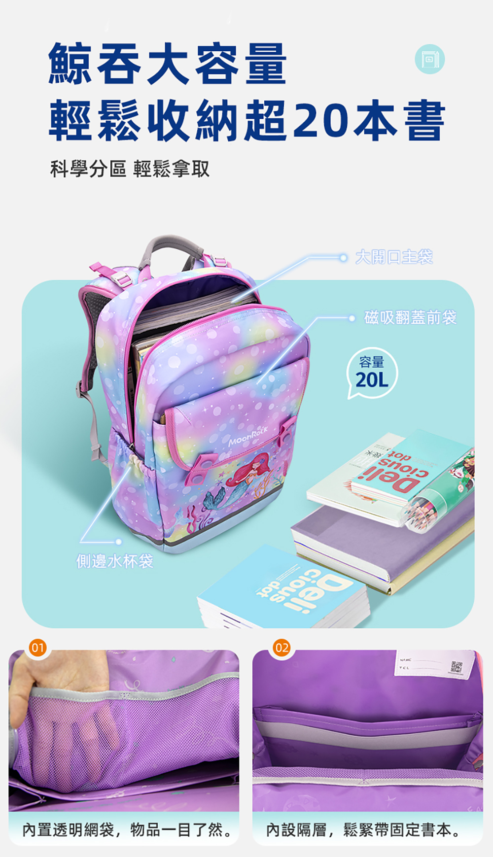 ● 25公升大容量,可裝20本書